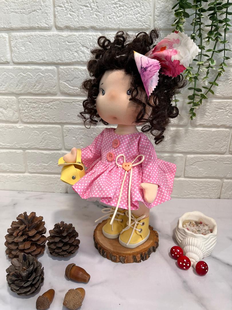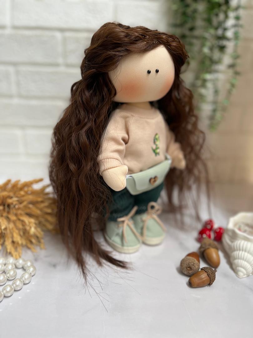 عروسک دست ساز دخترانه مدل خنگول طرح مو فرفری جنس پارچه ای