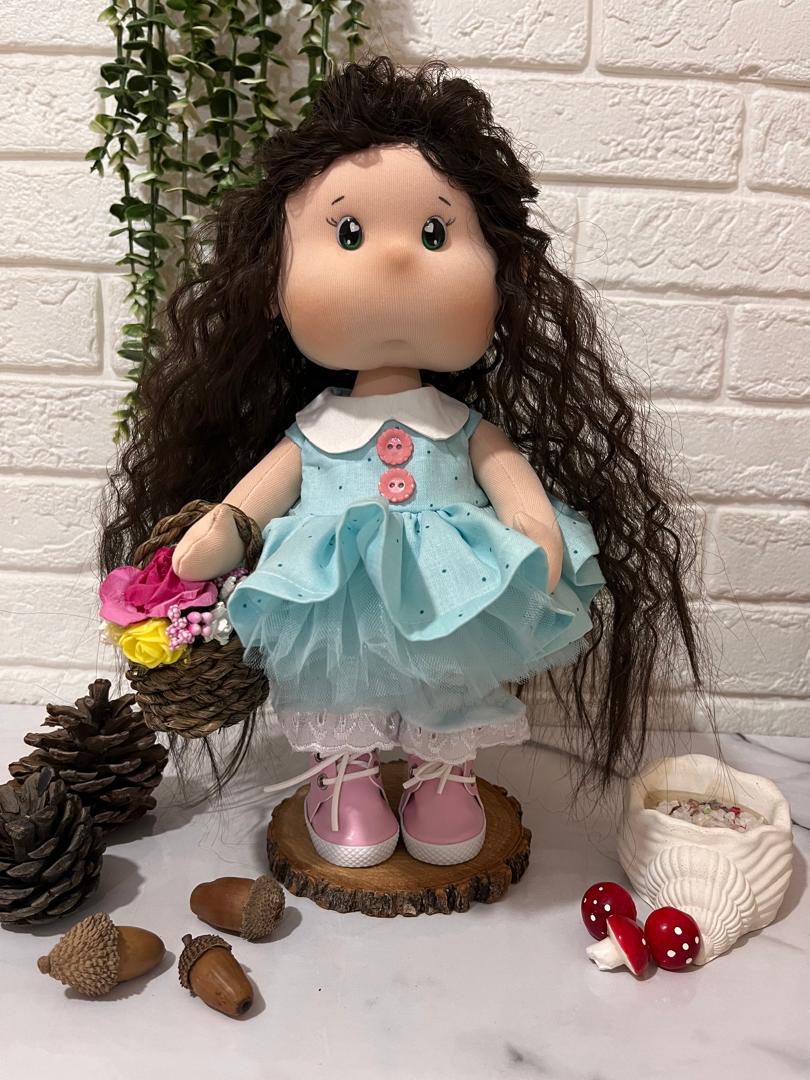 عروسک دست ساز دخترانه مدل خنگول طرح پیراهن آبی جنس پارچه ایناموجود
