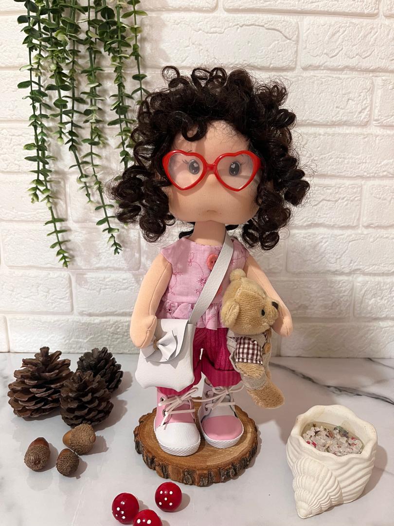 عروسک دست ساز دخترانه مدل خنگول طرح عینکی جنس پارچه ایناموجود