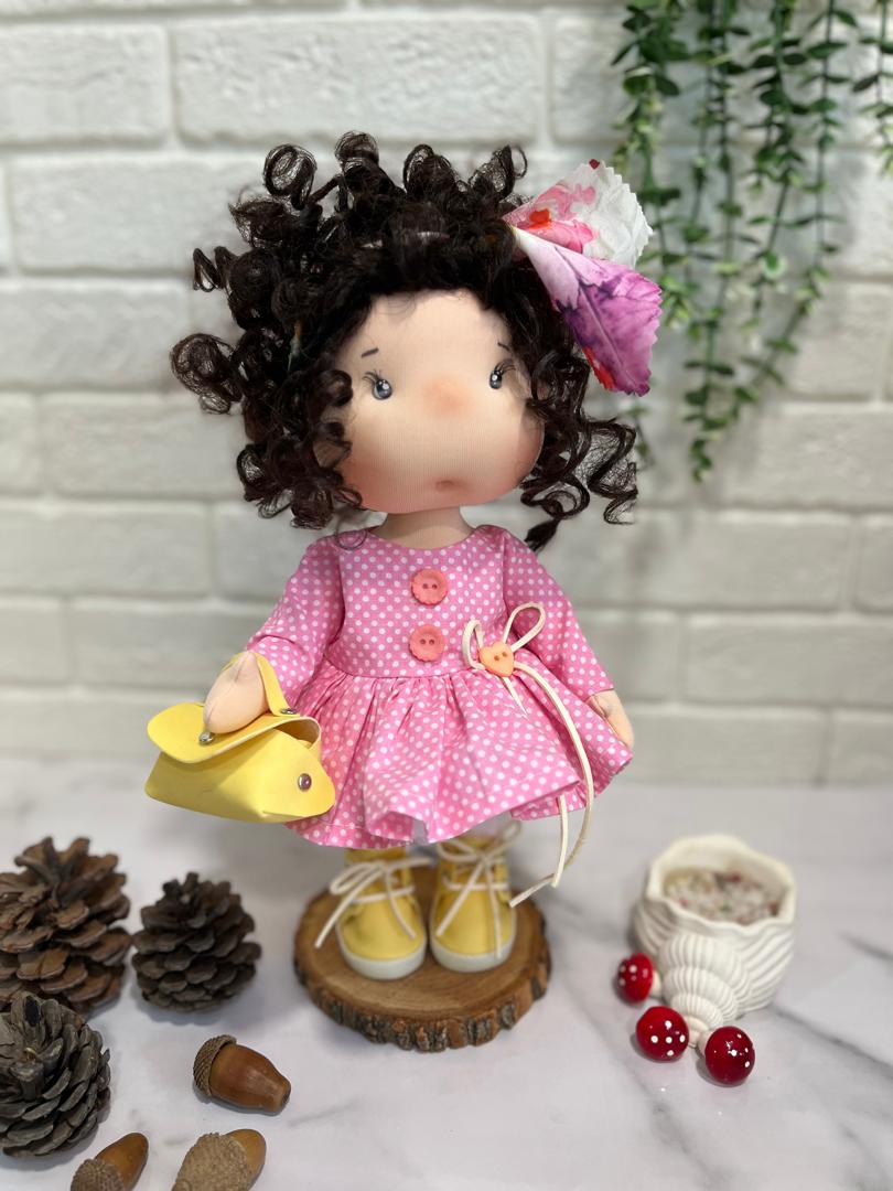 عروسک دست ساز دخترانه مدل خنگول طرح مو فرفری جنس پارچه ای